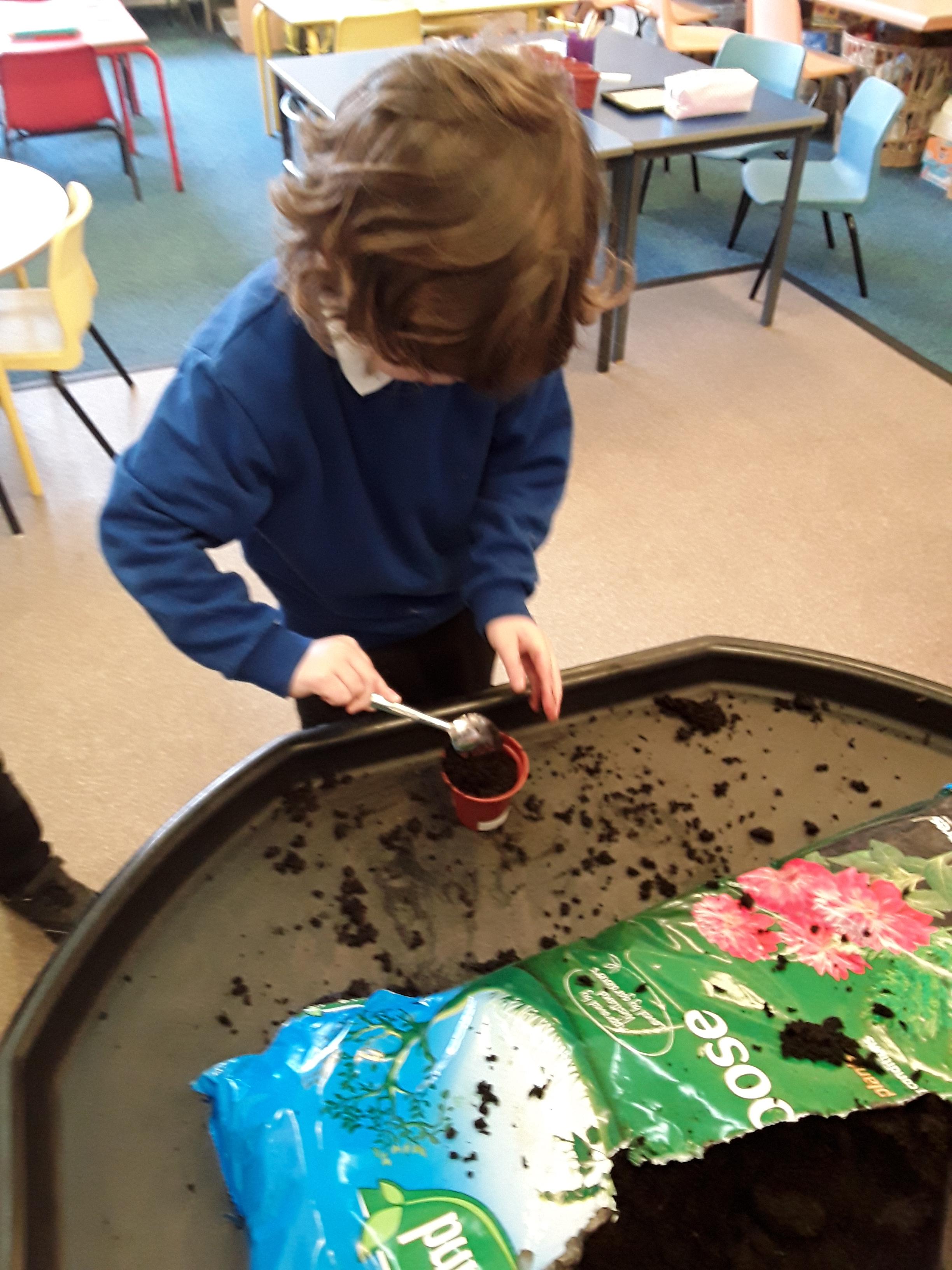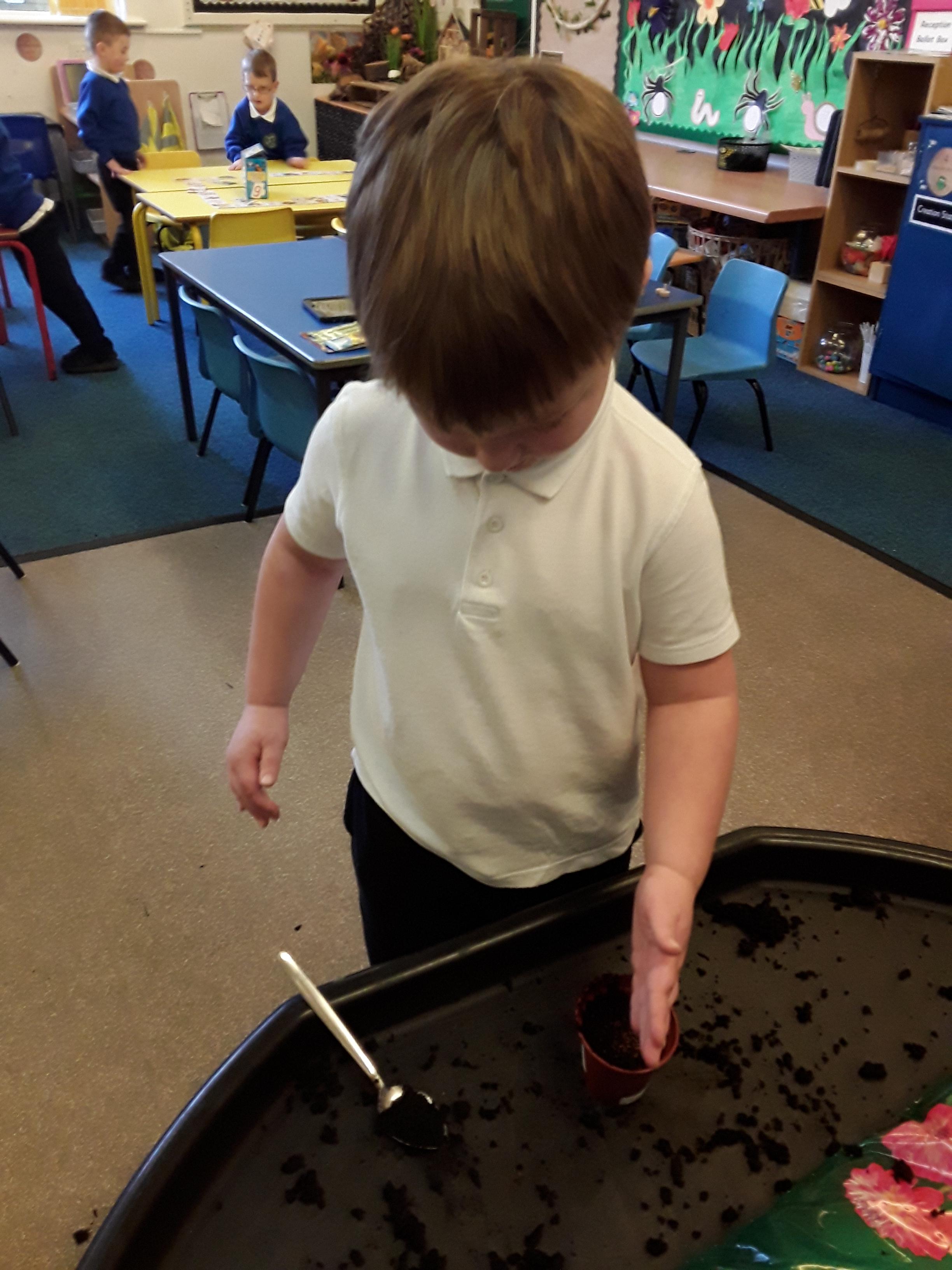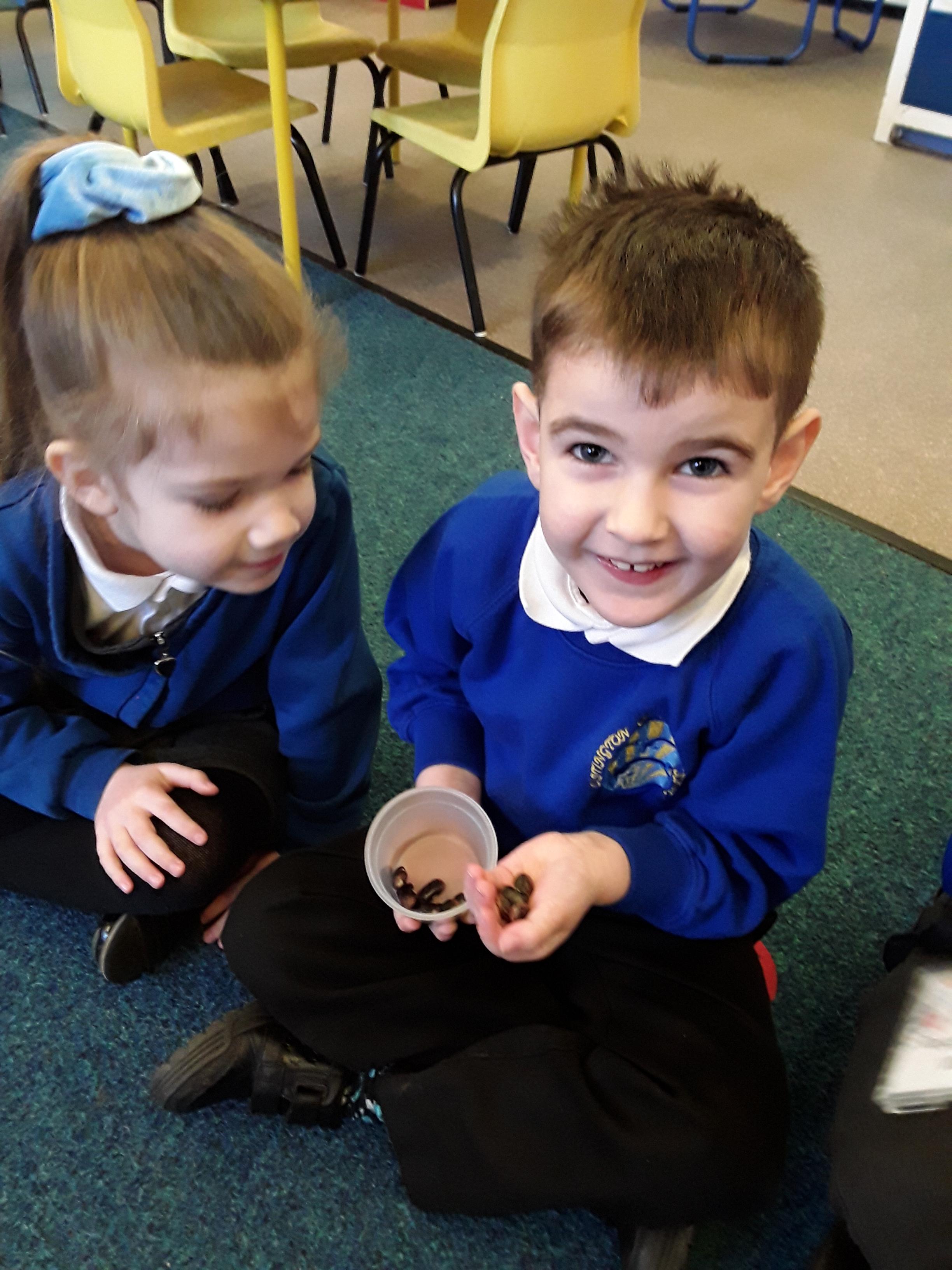 Reception explored different types of seeds looking in particular at runner beans, sunflower seeds and cress seeds. They had a close look at each type of seed, comparing their size and discussing which they thought would grow the tallest. As a class they spoke about what a seed needs to grow and each child decided which of the three seeds they would like to plant. Next, the children used their phonics to write a label for their plant pot and planted their seeds. After 5 weeks of helping them grow and ensuring that they had everything they needed, the children were very proud of the progress and were ready to take them home.