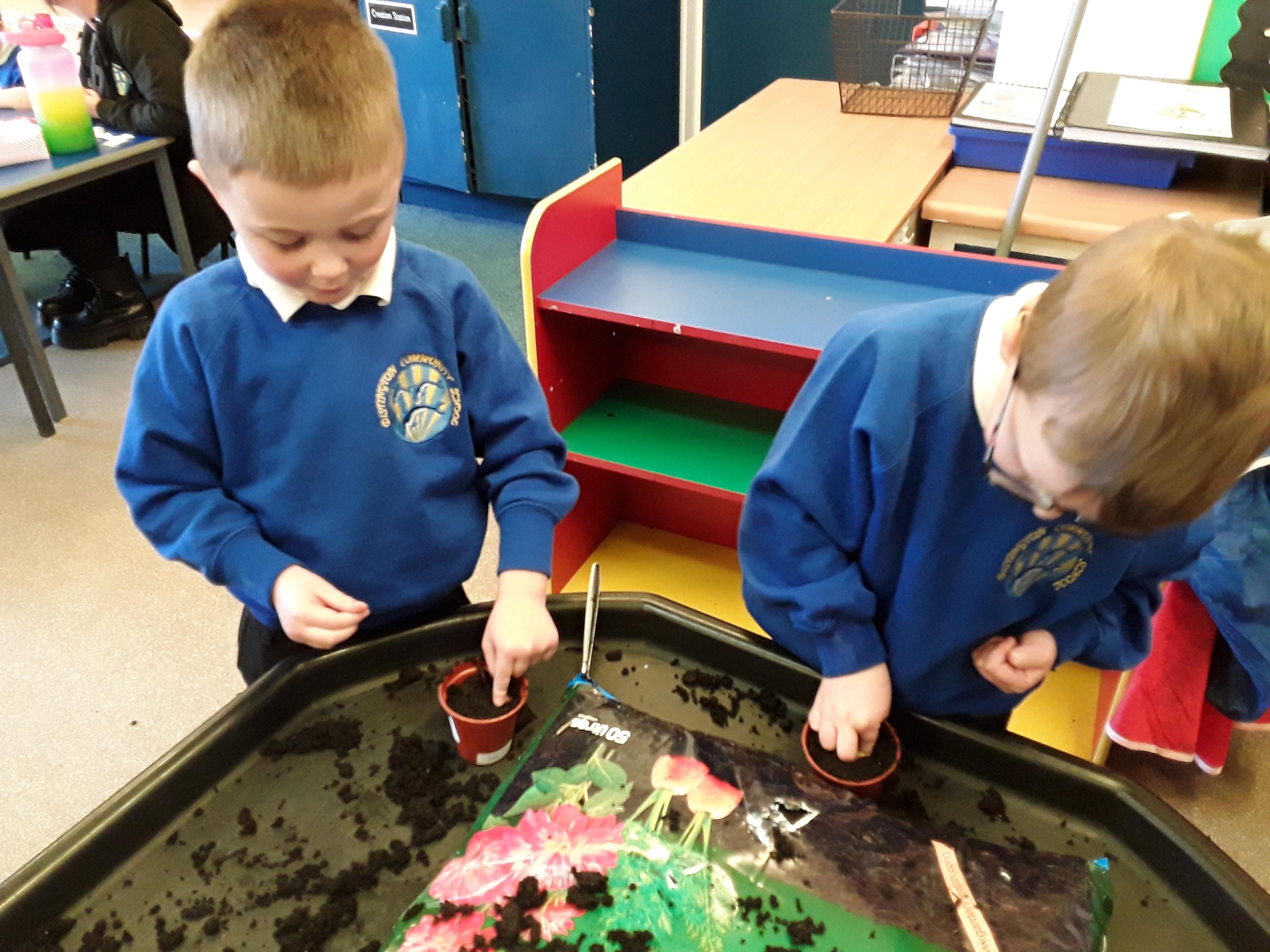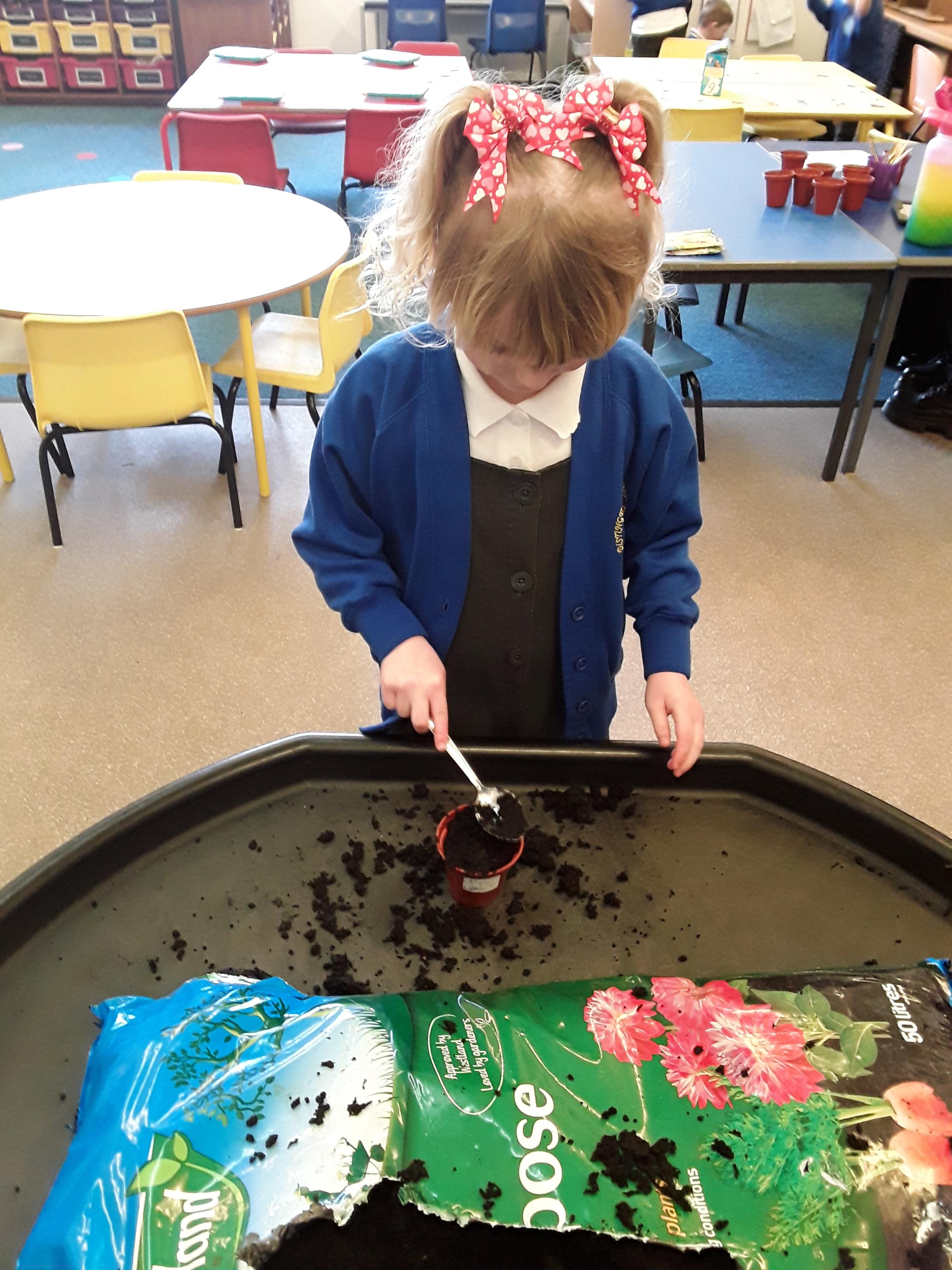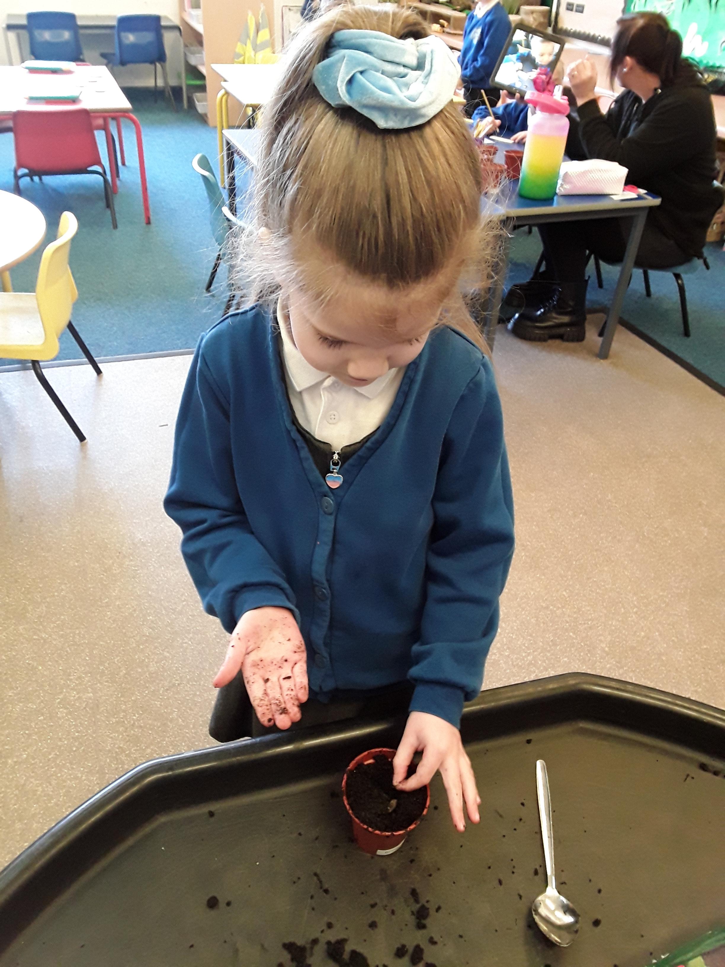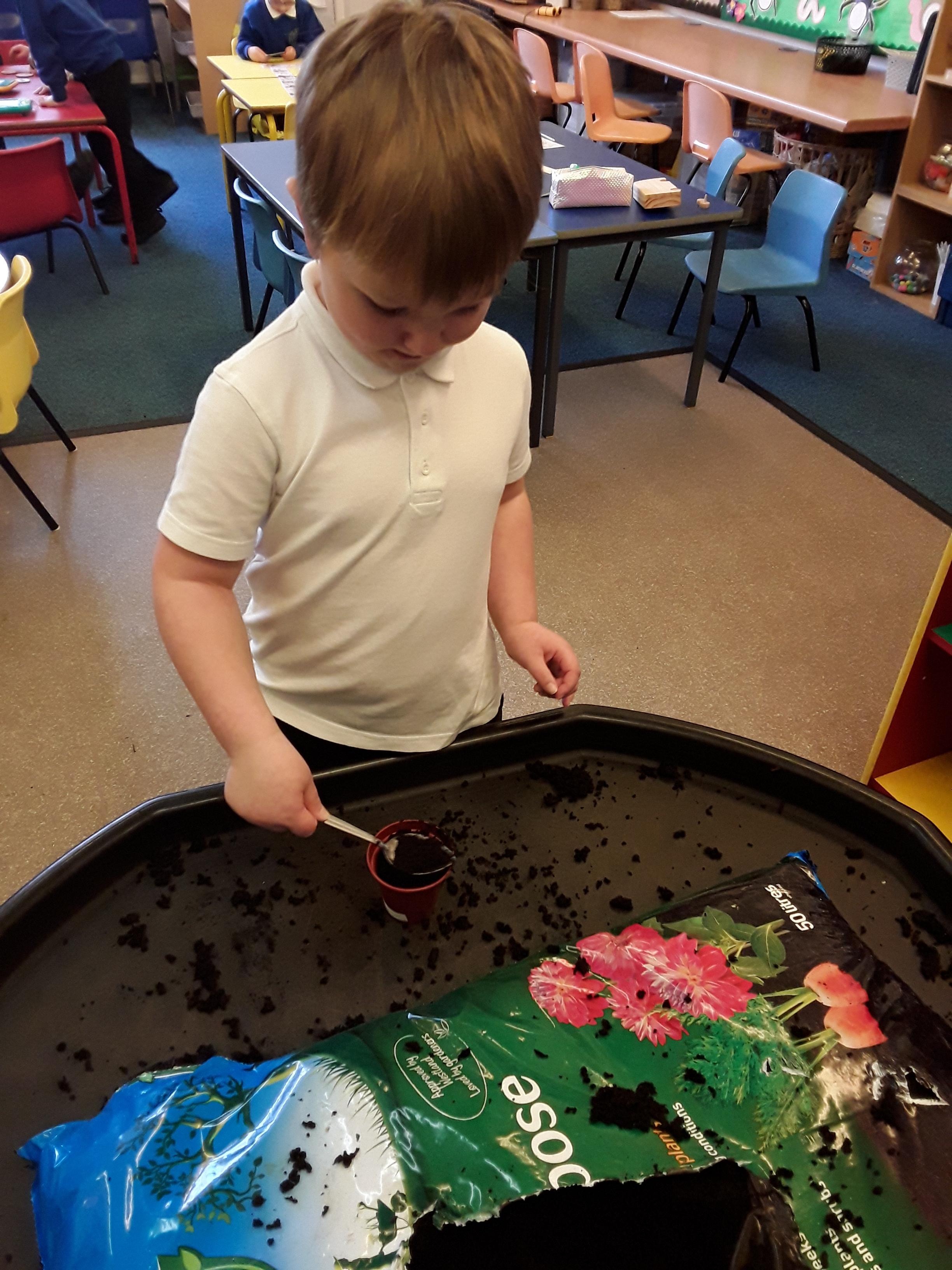 Reception explored different types of seeds looking in particular at runner beans, sunflower seeds and cress seeds. They had a close look at each type of seed, comparing their size and discussing which they thought would grow the tallest. As a class they spoke about what a seed needs to grow and each child decided which of the three seeds they would like to plant. Next, the children used their phonics to write a label for their plant pot and planted their seeds. After 5 weeks of helping them grow and ensuring that they had everything they needed, the children were very proud of the progress and were ready to take them home.