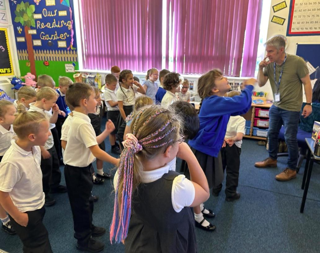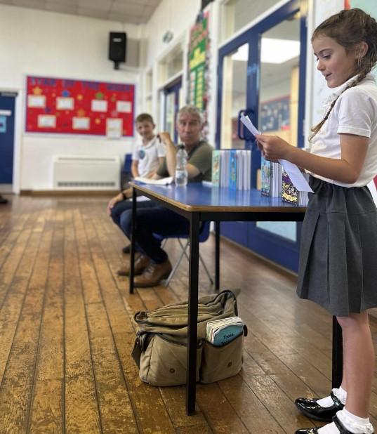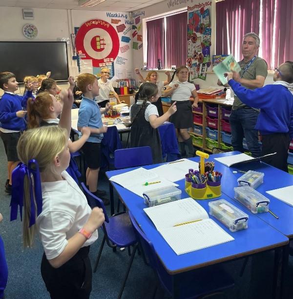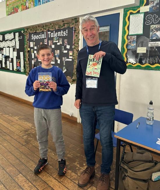On Tuesday 17th September, we had a fantastic day with Andy Tooze! We kickstarted the day with a whole-school assembly in which we performed lots of Andy’s poems using some creative and memorable actions. In this assembly, Andy introduced his brand new book that was only published on Monday 16th! Bobbie was the very first person to ever buy & own this book!