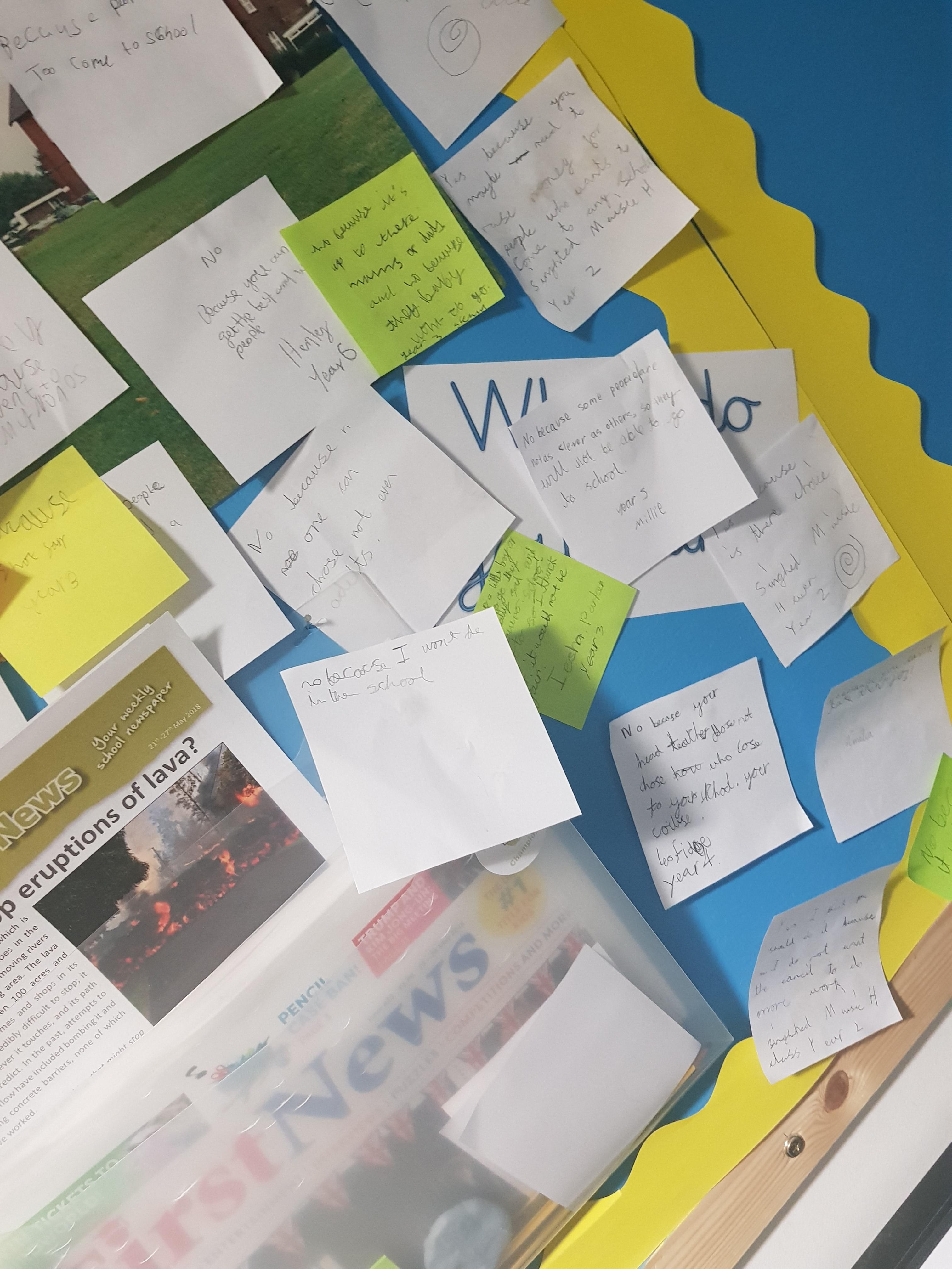 The teachers then discuss the question in class and it is adapted to suit each Key Stage and year group. In achievement assembly the children are again asked the question and they give examples of what they have spoken about and if their opinion has changed/stayed the same and why.