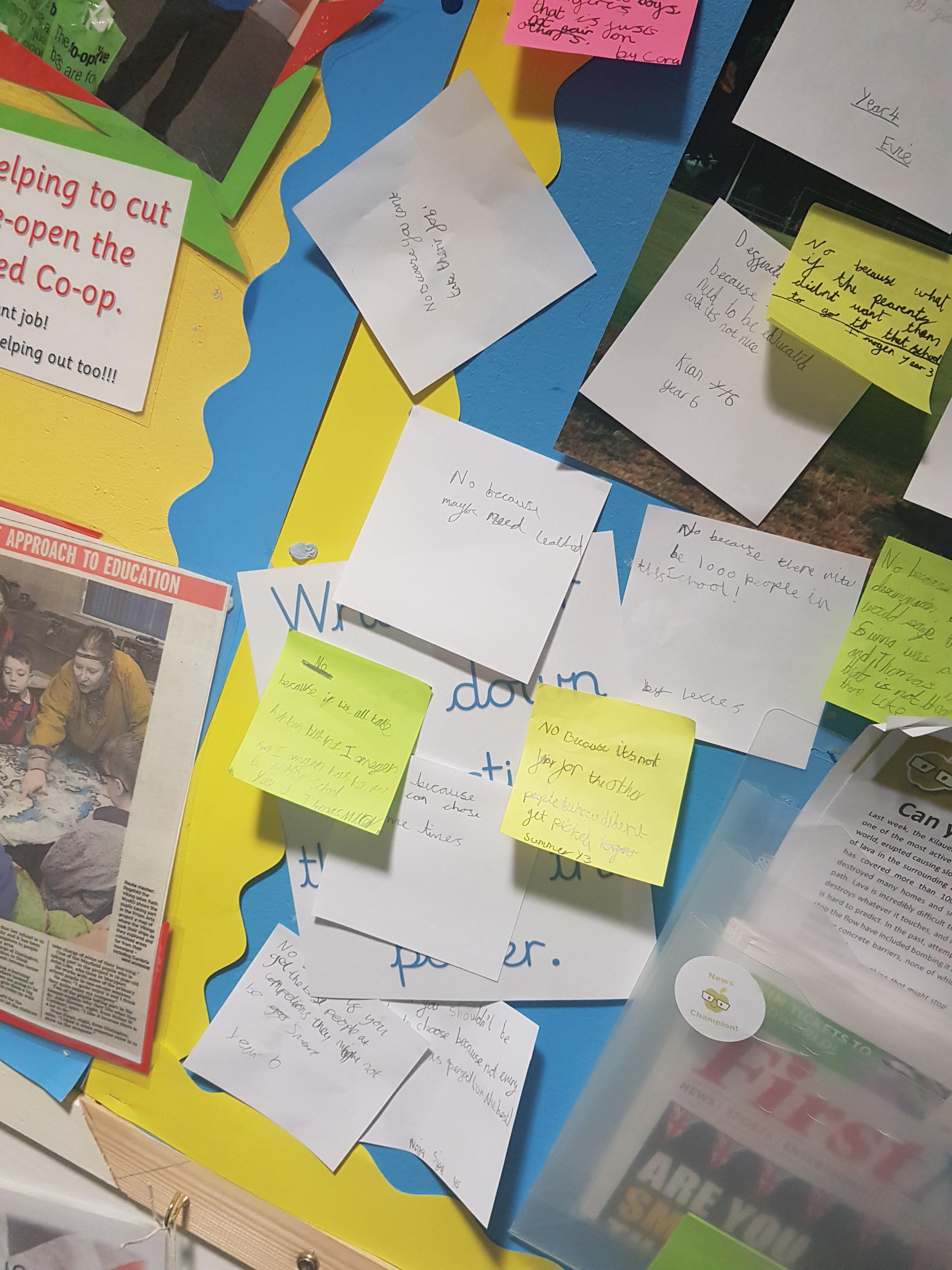 The teachers then discuss the question in class and it is adapted to suit each Key Stage and year group. In achievement assembly the children are again asked the question and they give examples of what they have spoken about and if their opinion has changed/stayed the same and why.
